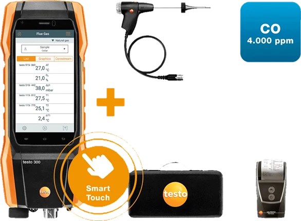 - Napredni analizator dimnih gasova koji se pokreće sofisticiranim dodirnim ekranom