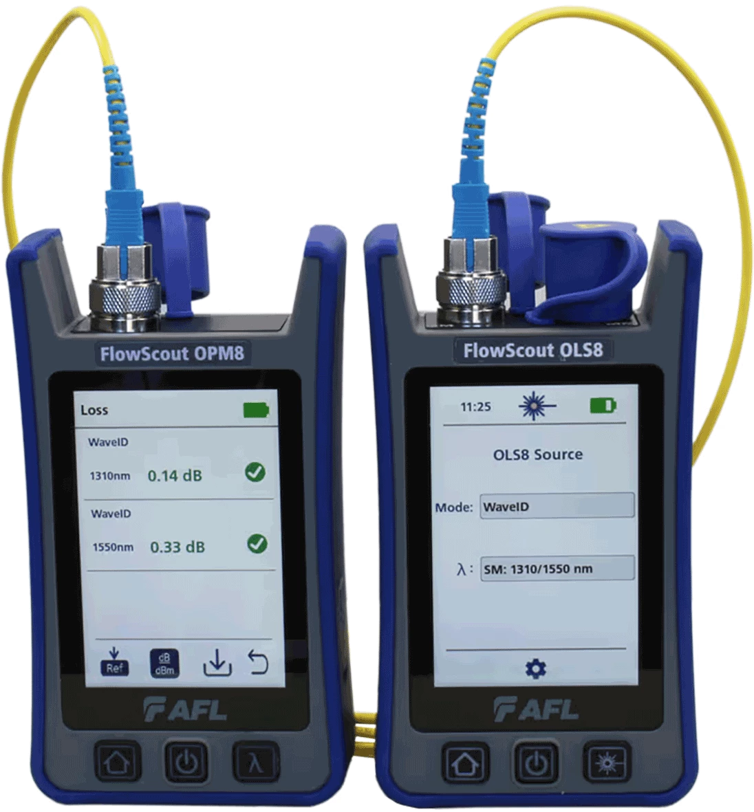 - AFL-ovi FlowScout Optical Loss Test Kit-ovi uključuju OPM8 optički mjerač snage i FlowScout OLS8 optički izvor svjetlosti.