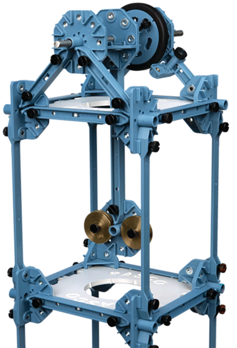 - Izgrađena od PASCO Structures greda, ova kula je napravljena da oscilira u svojim različitim rezonantnim modovima pomoću pokretača koji je pričvršćen gumicom za prvi sprat kule. Bežične ćelije opterećenja sa akcelerometrima su pričvršćene za svaki sprat kako bi se zabeležilo koliko se svaki sprat trese.