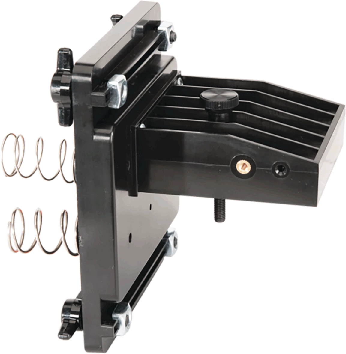- Stezaljka s odbojnicima za silu montira PASCO senzor sile direktno na dinamičku stazu. Uključuje 5 priključaka za sudaranje za senzor sile i praktično čuva svaki priključak na samoj stezaljci.
