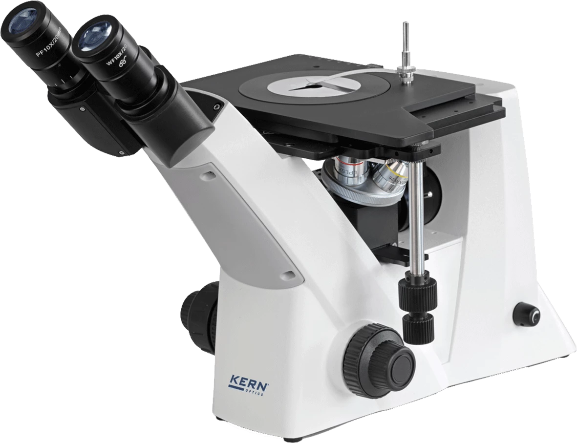 - KERN OLM serija je dio asortimana invertiranih mikroskopa i ističe se svojim dizajnom koji je ergonomski, robustan i izuzetno stabilan. Ova serija, sa velikom radnom udaljenosti je, na primjer, posebno pogodna za ispitivanje kvalitete površine sirovina i gotovih proizvoda u industriji