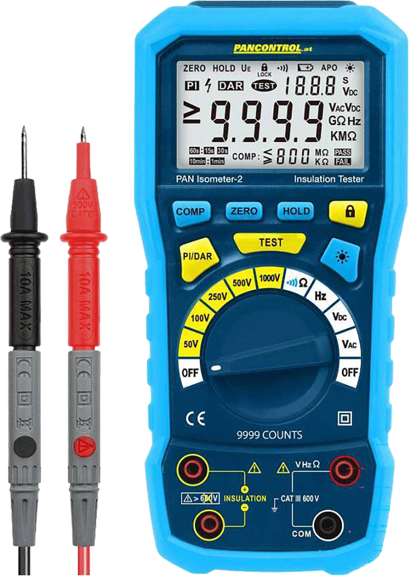 - Testni naponi za mjerenje izolacijske otpornosti: 50 V, 100 V, 250 V, 500 V i 1000 V