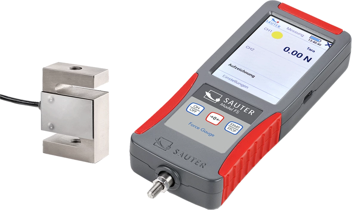 - Spreman set sastavljen od premium sile mjerača FS 2 i vanjske "S" mjerne ćelije CS za mjerenje vučne i tlačne sile